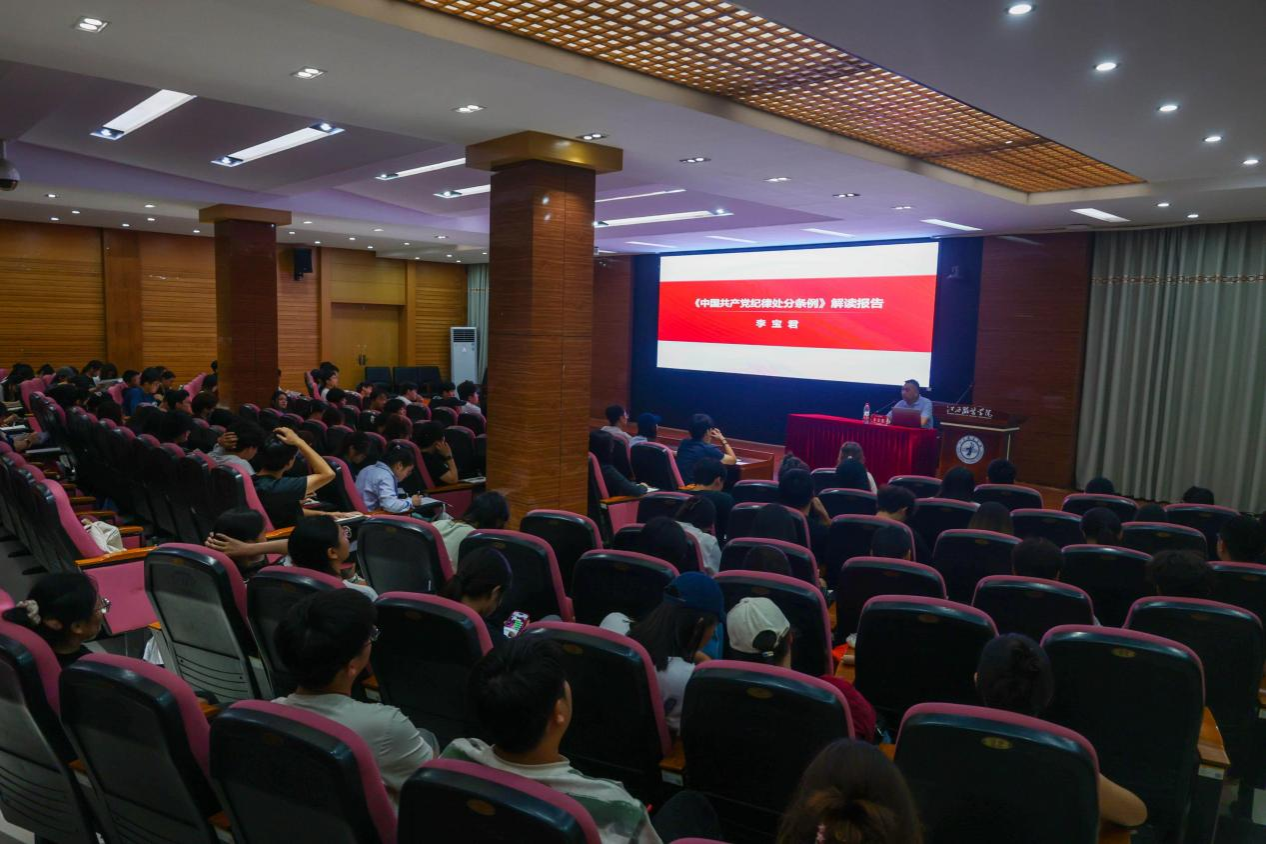 9月24日晚,校党委副书记、纪委书记、副校长李宝君以《中国共产党纪律处分条例》解读为题,作专题辅导报告。李书记从三个方面为学员们展开细致的讲解:一是深入阐释修订《条例》的重要意义,结合新时代党的建设总要求,明晰《条例》在严明党的纪律、维护党的团结统一、保障党的事业发展中的重要作用;二是系统梳理《条例》修订的重点内容,并以实例阐述;三是详细说明抓好《条例》的贯彻执行、推进党的自我革命的具体路径,从领会主旨要义、强化学习宣传、严格监督执纪等方面,提出落实《条例》的具体要求。他强调,党员、干部要深入领会加强纪律建设是全面从严治党的治本之策,把增强党性、严守纪律、砥砺作风融入日常、化为习惯;要坚持把纪律挺在前面,做到纪律面前人人平等,全面从严治党永远在路上,党的自我革命永远在路上。